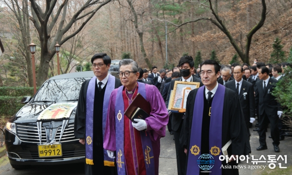 광림교회를 출발하여 12시경 장지인 광림 수도원에 운구차가 도착을 하였다. 500여 명의 성도들은 하늘나라로 가시는 감독님을 배웅하였다.