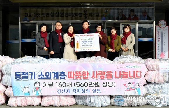 [아시아뉴스통신=윤석원 기자] 경산시 목련회(회장 박경윤)는 5일 경산시청을 방문해 소외된 이웃들이 따뜻한 겨울을 보낼 수 있도록 사랑의 겨울 이불 160채(560만원 상당)를 전달했다.