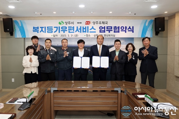 [아시아뉴스통신=윤석원 기자] 경북 상주우체국(국장 김동락)과 상주시(시장 강영석)는 31일 복지사각지대 발굴을 위한 '복지등기우편서비스' 업무협약(MOU)을 체결했다.