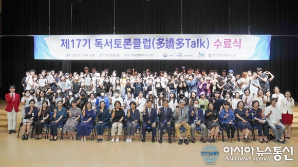 [아시아뉴스통신=윤석원 기자] 계명문화대학교(총장 박승호)가 학생들의 올바른 인성 함양과 직업기초 능력 향상을 위해 '1인 1책 더 읽기' 프로그램으로 다양한 독서 활동을 펼치는 등 독서문화 저변확대에 앞장서고 있는 가운데 7일 대학 동산홀에서 '제17기 독서토론클럽 다독다톡(多讀多Talk) 수료식'을 개최했다.