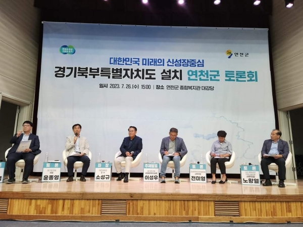 경기도의회 안전행정위원회 윤종영 의원은 26일 연천군 종합복지관 3층 대강당에서 주최된 ‘경기북부특별자치도 설치 연천군 토론회’에 토론자로 참여했고 경기북부특별자치도 설치 추진에 있어 방향성과 경기도와 경기도의회의 역할에 대해 논의했다.