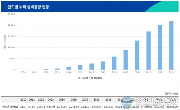 | 우리나라 연도별 태양광 발전설비 현황.[사진=신재생에너지 클라우드플랫폼 홈피캡쳐] |