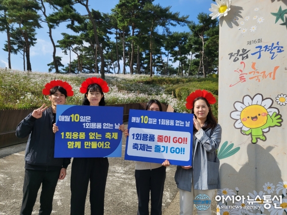 이번 캠페인은 대표 가을꽃인 구절초 축제를 즐기러 오는 방문객을 대상으로 편리하게 사용되는 1회용품에 대한 인식을 전환하고 축제는 즐기며 환경을 돌보자는 의미로 ‘1회용품 줄이고(GO)! 축제는 즐기고(GO)!’라는 주제로 진행됐다.