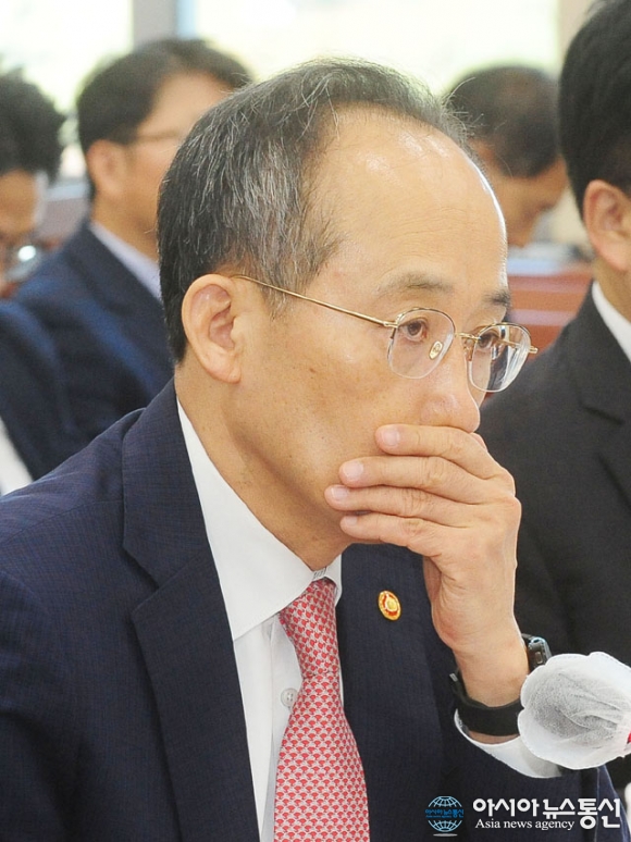 | 추경호 경제부총리 겸 기획재정부 장관이 20일 서울 국회에서 열린 국감에서 얼굴을 만지고 있다./아시아뉴스통신=김용진 기자 |