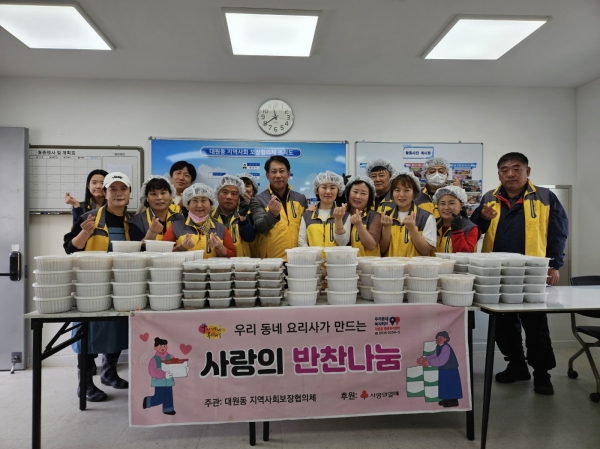 한편 ‘사랑의 반찬나눔’사업은 대원동 지역사회보장협의체의 특화사업 중 하나로 독거노인 및 거동이 불편한 어르신들께 매월 1회 정성스레 반찬을 만들어 전달하고 안부를 살피는 사업이다.