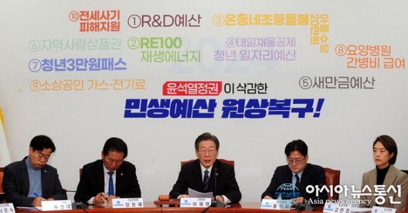 | 이재명 더불어민주당 대표가 17일 서울 국회에서 열린 최고위원회 회의에서 발언을 하고 있다./아시아뉴스통신=김용진 기자 |