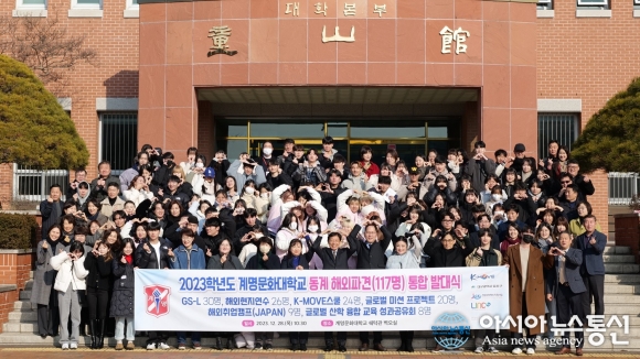 계명문화대학교는 28일 대학 벽오실에서 '2023학년도 계명문화대학교 동계 해외파견 통합 발대식'을 갖고 해외에 파견되는 학생들을 격려했다.