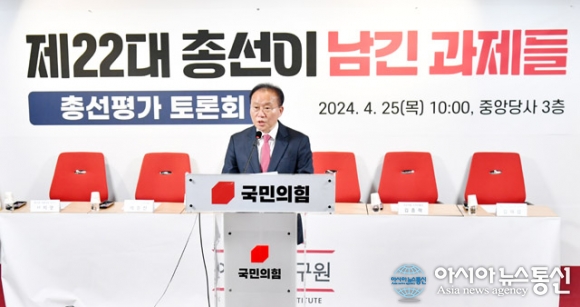 | 윤재옥 국민의힘 대표 권한대행 겸 원내대표가 25일 서울 여의도 중앙당사에서 열린 제22대 총선에서 남은 과제 토론회에서 발언을 하고 있다./아시아뉴스통신=김용진 기자 |