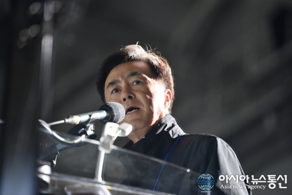| 김태흠 충남도지사가 '제63회 성웅 이순신축제'에서 베이밸리메가시티 육성을 약속하고 있다./사진제공=충남도청 |