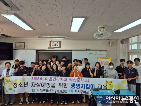 [아시아뉴스통신=장희연 기자] 산청군 정신건강복지센터는 지난 20일 제5호 마음건강학교로 지정된 덕산중학교 학생들을 대상으로 ‘ 청소년 자살예방 생명지킴이 양성교육 ’ 을 실시했다고 21일 밝혔다.