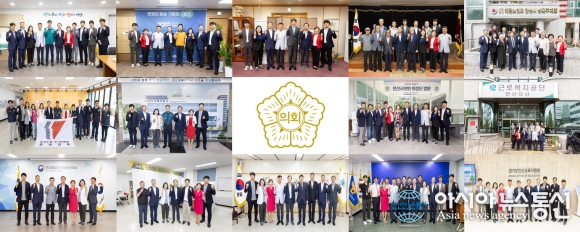 | 경기 안산시의회 의장단이 최근 유관 기관 및 단체 방문을 실시하고 제9대 의회 후반기 의장단의 출범을 알렸다. 사진은 의장단이 앞서 22일과 23일, 26일 3일 간에 걸쳐 14곳의 기관 및 단체를 방문한 모습.사진제공=안산시의회 |