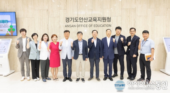 | 경기 안산시의회 의장단이 최근 유관 기관 및 단체 방문을 실시하고 제9대 의회 후반기 의장단의 출범을 알렸다. 사진은 의장단이 23일 안산교육지원청을 방문한 모습.사진제공=안산시의회 |
