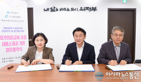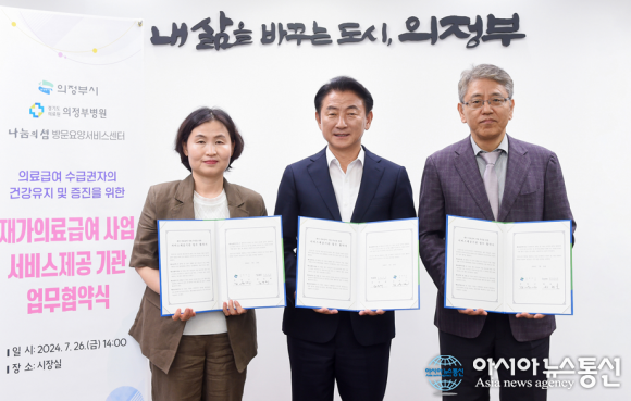 [아시아뉴스통신=박성근 기자]의정부시(시장 김동근)는 재가 의료급여사업 추진을 위해 7월 26일 경기도의료원 의정부병원(병원장 하성호) 및 나눔의샘 방문요양서비스센터(센터장 정임채)와 서비스 제공기관 업무협약을 체결했다.