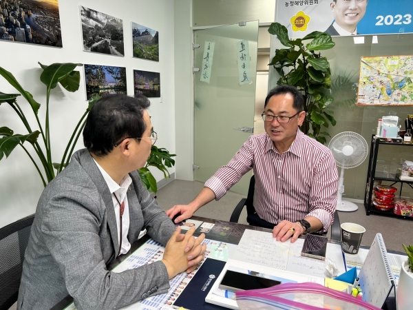 경기도의회 김완규 의원은 7월 23일 경기도의회 이오수 의원실에서 개최된 간담회에 참석해, 축산농가의 고질적인 가축분뇨 악취 문제 해소를 위한 정책 논의했다.