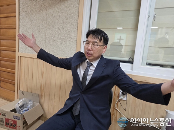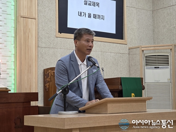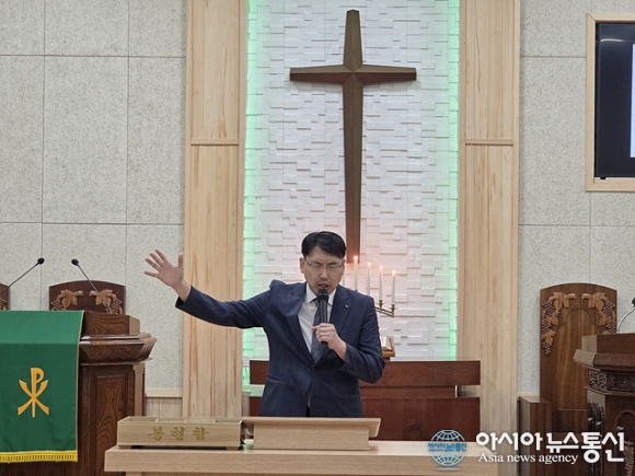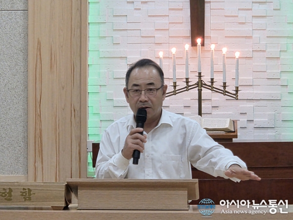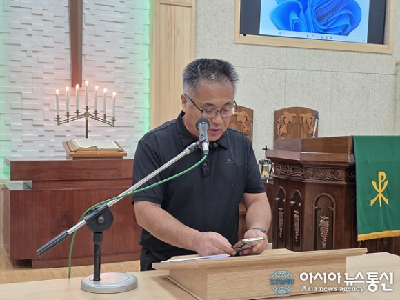 | 김승규 평강교회 목사가 기도를 하고 있다. |