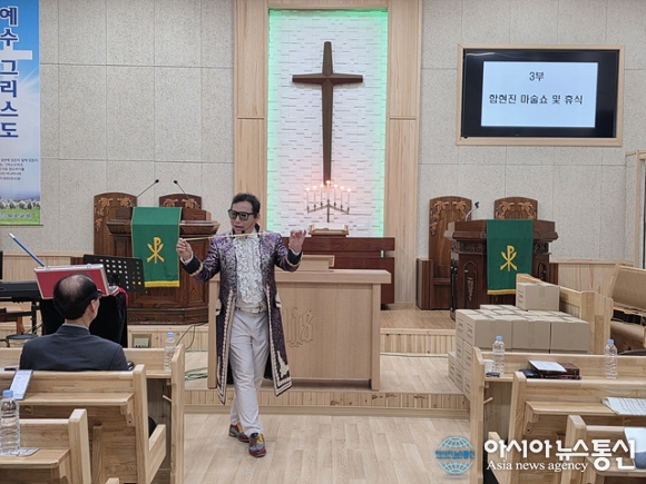 | 함현진 마술사가 마술 공연을 선보이고 있다. |