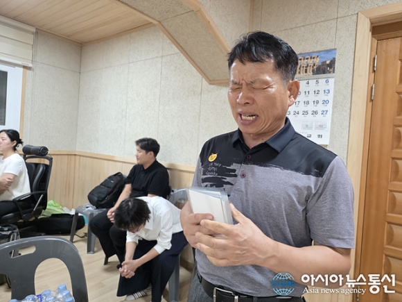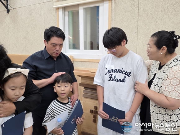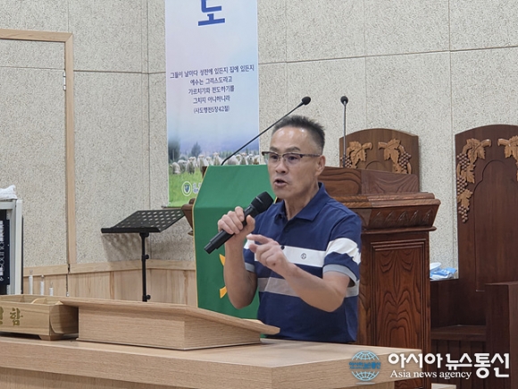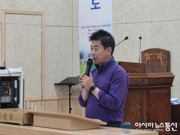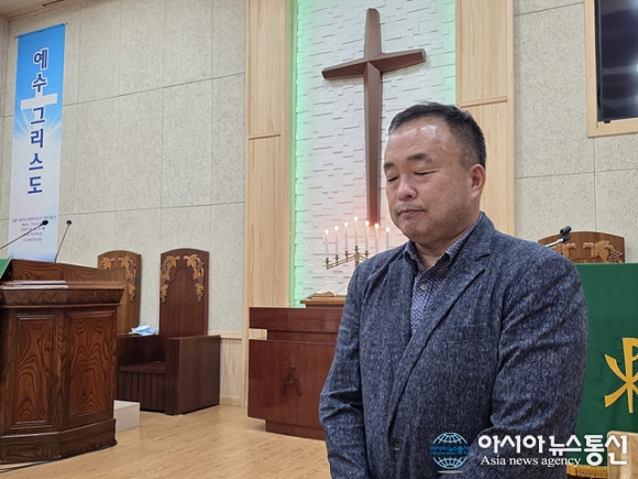 | 정지성 제주 소랑교회 목사가 기도를 하고 있다. |
