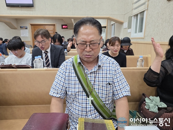 | 신동원 장로가 기도를 하고 있다. |