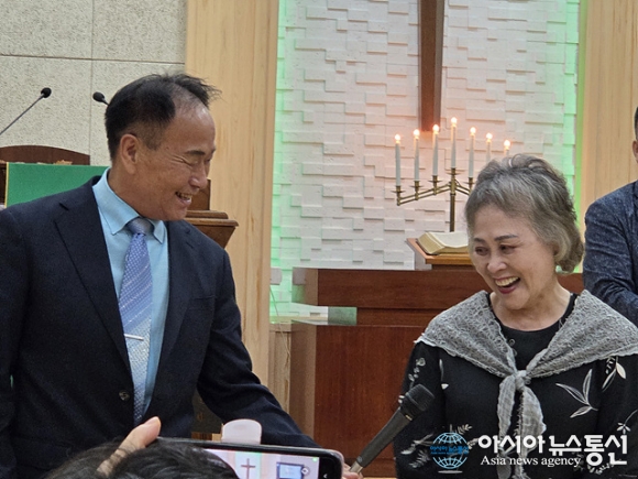 | 장세희 장로 및 선사모 회장(왼쪽)과 성정현 장로. |