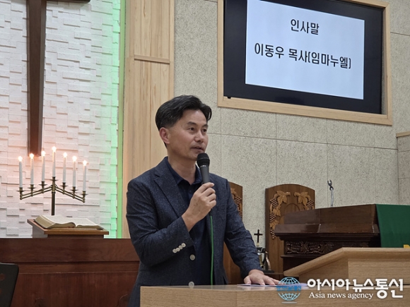 | 이동우 목사가 인사말을 하고 있다. |