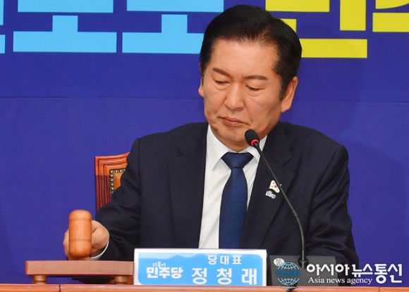 | 정청래 민주당 당 대표가 10일 서울 국회에서 열린 최고위원회 회의에서 의사봉을 치고 있다./아시아뉴스통신=김용진 기자 |