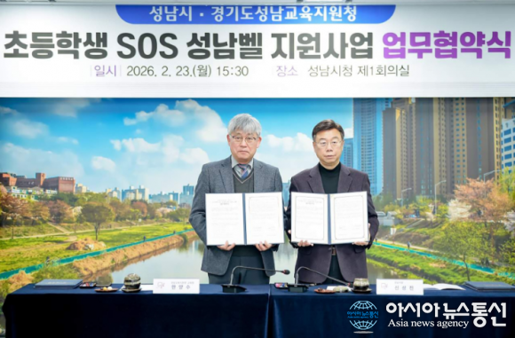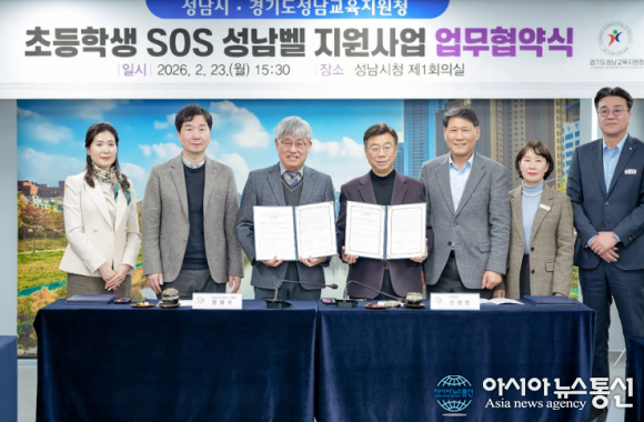 [아시아뉴스통신=박성근 기자]성남시는 2월 23일 성남교육지원청과 ‘초등학생 대상 긴급 구조 요청(SOS) 성남벨 지원 사업’ 추진을 위한 업무 협약을 했다.