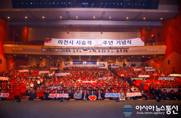 [아시아뉴스통신=박성근 기자]이천시(시장 김경희)는 2월 24일 오전 10시, 이천아트홀 대공연장에서 ‘시 승격 30주년 기념식’을 성황리에 개최하고 시민들과 함께 지난 30년의 성과를 되짚어보는 화합의 장을 가졌다.