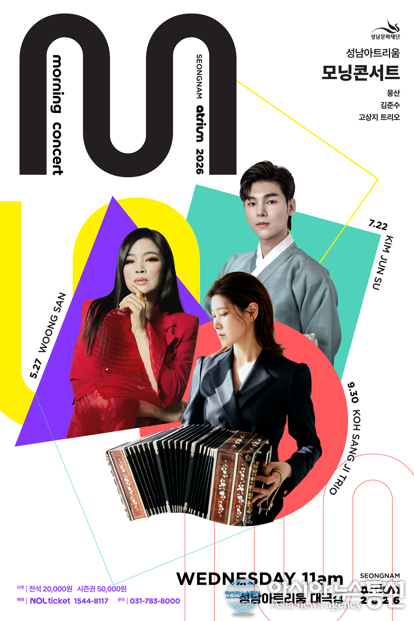성남아트리움은 올해 새로운 낮 공연 기획 시리즈 ‘모닝 콘서트’를 신설하고, 5·7·9월 수요일 오전 11시, 재즈와 국악, 탱고 등 장르별 국내 대표 아티스트의 무대를 선보인다.