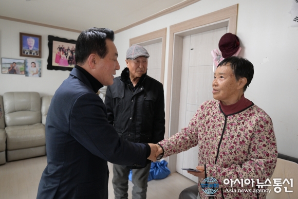 지난 24일 독립유공자 유족 어르신을 방문한 백성현 논산시장은 건강 상태와 생활 불편 사항 등을 세심히 살피며 존경과 감사의 마음을 전했다.