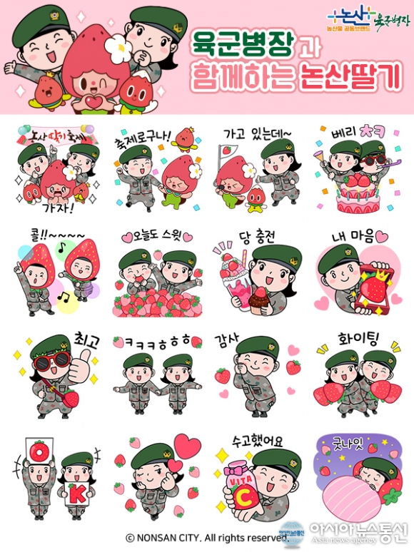 [아시아뉴스통신=이준상 기자] 논산시(시장 백성현)는 오는 3월 26일부터 29일까지 개최되는 ‘2026 논산딸기축제’를 맞아 ‘육군병장’ 카카오톡 이모티콘을 배포한다고 27일 밝혔다.
