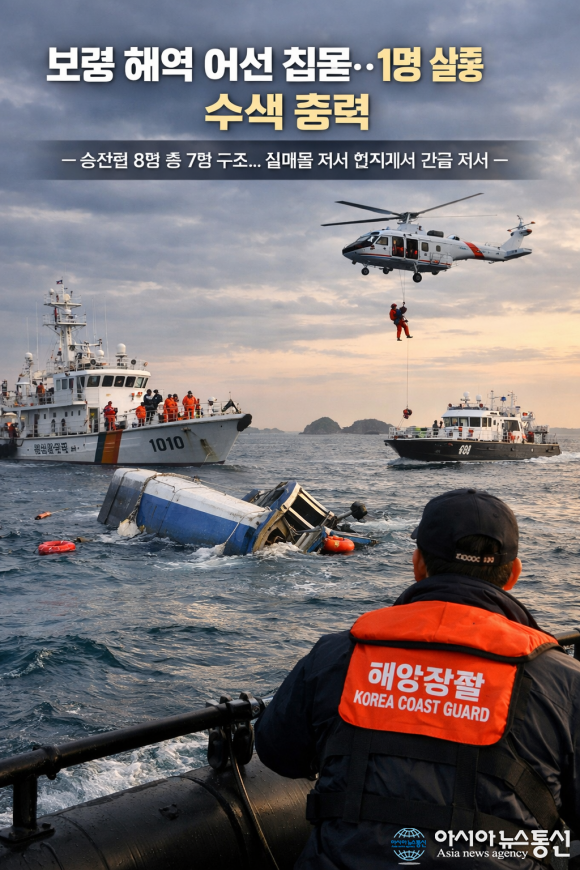 [아시아뉴스통신=장선화 기자]충남 보령 해역에서 조업을 마치고 복귀하던 어선이 침몰해 1명이 실종되는 사고가 발생했다.