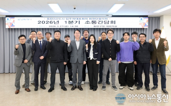 [아시아뉴스통신=한기만 기자] 정명근 화성특례시장은 27일 동탄구청 대회의실에서 동탄2신도시 아파트 입주자대표 회장단협의회와 '2026년도 1분기 소통간담회'를 가졌다.