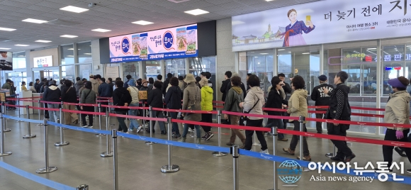| ▲장사진 이룬 북항스테이션...봄을 맞아 목포해상케이블카를 타기 위해 북항스테이션에 관광객들의 발길이 이어지고 있다./아시아뉴스통신=고정언 기자 |