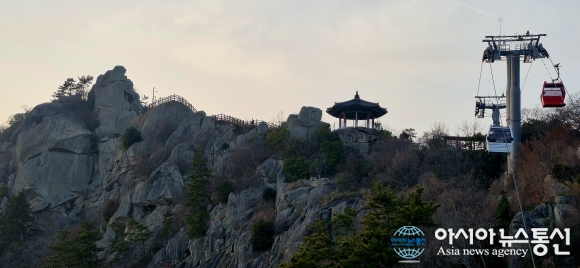 | ▲특색있는 바위의 유산기암 절경...케이블카를 타고 가다 보면 유달산의 자랑인 기암괴석을 볼수 있다. 목포유달산은 바위산으로 바위의 모습은 케이블카를 따라 천의 얼굴을 보여준다. 구 목포8경 중 하나인 유산기암(유달신의 기이한 바위)은 이를 대변하고 있다./아시아뉴스통신=고정언 기자 |