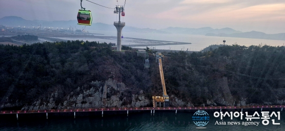 | ▲짜릿함을 전해주는 5번째 주탑...목포해상케이블카 주탑 중 세계 두 번째 높이의 5번타워는 그 높이가 155m에 달한다. 프랑스 포마의 최신설계와 시공사 새천년종합건설의 첨담공법으로 건설된 압도적 높이에서 짜릿함을 느낄수 있다./아시아뉴스통신=고정언 기자 |