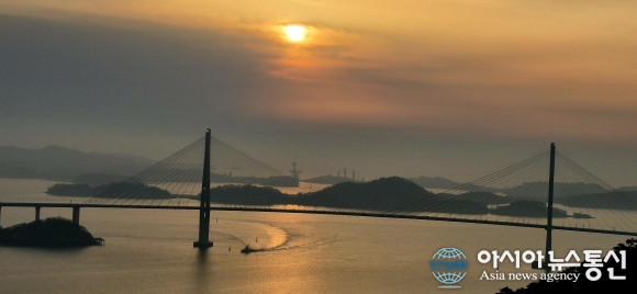 | ▲용당귀범의 황홀함...목포해상케이블카는 모든 순간이 선택의 연속이다. 계절과 시간에 따라서 풍경이 달라지기 때문이다. 28일 황금빛 낙조 시간 목포대교를 지나 목포항으로 입항하는 선박의 모습은 흡사 목포팔경 중 하나인 '용당귀범'이 아닐수 없다./아시아뉴스통신=고정언 기자 |
