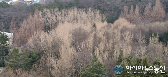 | ▲물먹은 나무 회화색채 느낌 그대로...28일 완연한 봄, 유달산 곳곳에 잎을피우기 위해 물을 머금은 나무들의 색깔이 한폭의 그림을 연상케 한다./아시아뉴스통신=고정언 기자 |