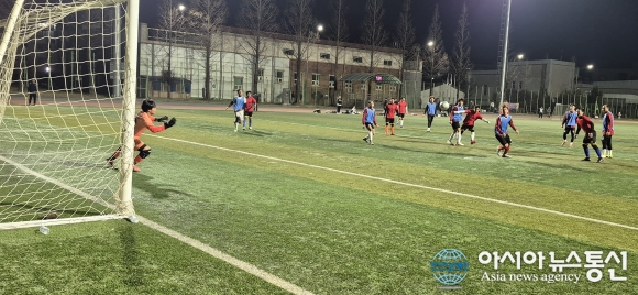 | 1일 대불산단복합문화센터(DCC) FC Global League 2주차 네팔과 캄보디아 경기가 열린가운데 캄보디아 골키퍼가 공을 막기위해 몸을 날리고 있다./아시아뉴스통신=고정언 기자 |