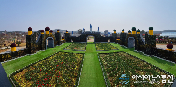 특히 ‘베르사유 궁전’을 모티브로 한 성벽형 조형 공간은 정형미와 조경미를 결합한 대형 연출 구역으로 조성돼 관람객들의 발길을 끌고 있다. 여기에 지름 10m 규모의 축구공 형태 토피어리 등 다양한 포인트 조형물이 더해지며 현장 체험형 전시 완성도를 높였다.