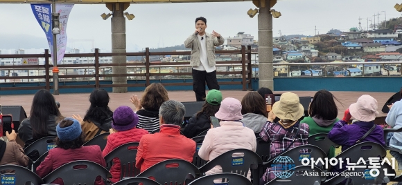 | 2026 유달산봄축제가 4~5일 '꽃피는 순간 봄날의 소풍'을 주제로 열린 가운데 가수 천록담이 노적봉예술공원 무대에서 공연을 하고 있다./아시아뉴스통신=고정언 기자 |