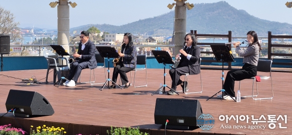 | 2026 유달산봄축제가 '꽃피는 순간 봄날의 소풍'을 주제로 열린 가운데 5일 노적봉 예술공원 무대에서 관현악단 '동행'이 봄내음 물씬 풍기는 음악들을 관중들에게 선사하고 있다./아시아뉴스통신=고정언 기자 |