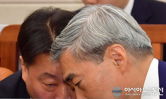 | 신현송 한국은행 총재 후보자가 15일 서울 국회 재정경제기획위원회 인사 청문회에서 대화를 하고 있다./아시아뉴스통신=김용진 기자 |