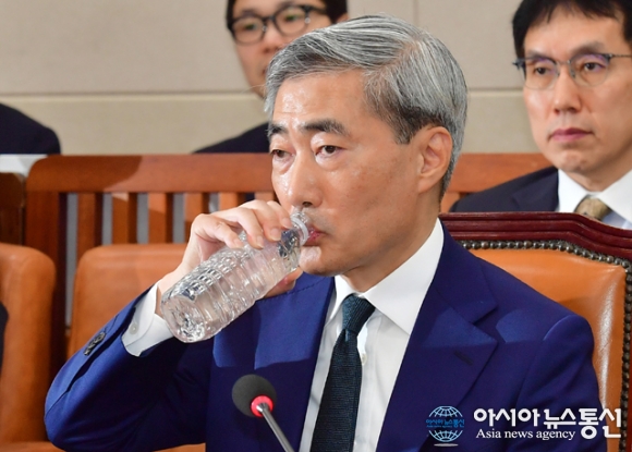 | 신현송 한국은행 총재 후보자가 15일 서울 국회에서 열린 재정경제기획위원회 인사청문회에서 물을 마시고 있다./아시아뉴스통신=김용진 기자 |