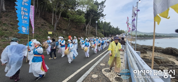 | 제46회 진도신비의 바닷길 축제 사흘째인 19일 해안도로 일대에서 주무대까지 신나는 북놀이 퍼레이드가 펼쳐졌다./아시아뉴스통신=주송배 기자 |