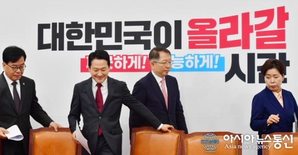 | 국민의힘 지도부들이 20일 서울 국회에서 열린 최고위원회 회의에 참석 하고 있다./아시아뉴스통신=김용진 기자 |