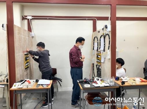 | 전기기능사 실무양성과정에서 훈련생들이 실무 교육을 받고 있다./사진제공=구로구청 |