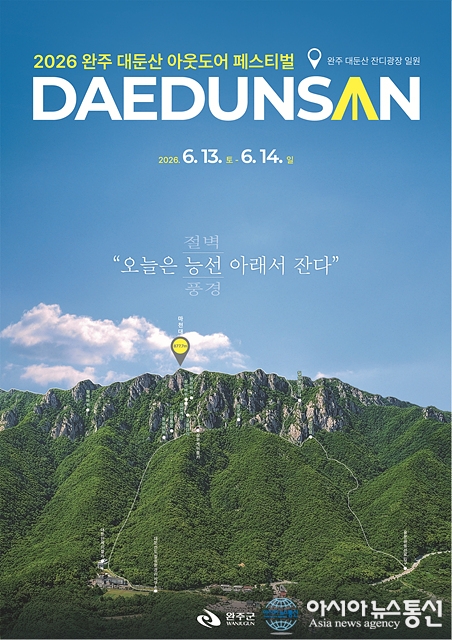 [아시아뉴스통신=이미내 기자] 완주군이 산악 극한 활동과 야외 활동의 정수를 선보이는 대표 축제인 ‘완주 대둔산 축제’를 오는 6월 13일부터 14일까지 이틀간 대둔산 일원에서 개최한다.