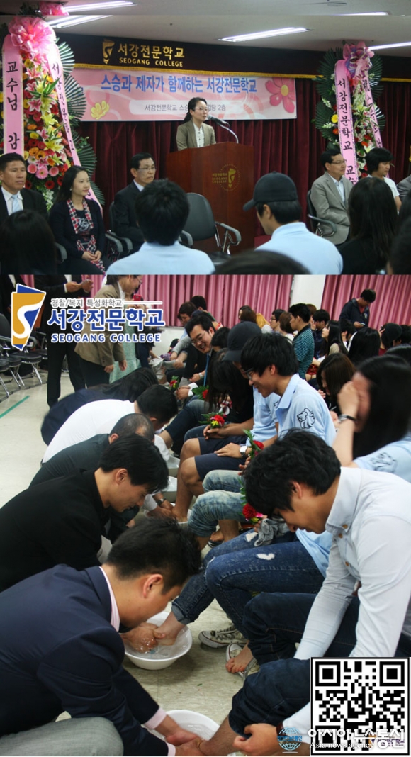 이날 제자사랑 세족식 행사는 서강전문학교 교수들이 제자들의 발을 씻어줌으로써 스승에 대한 존경과 사랑이 더욱 두터워 지기를 기대하는 마음에서 준비했다.