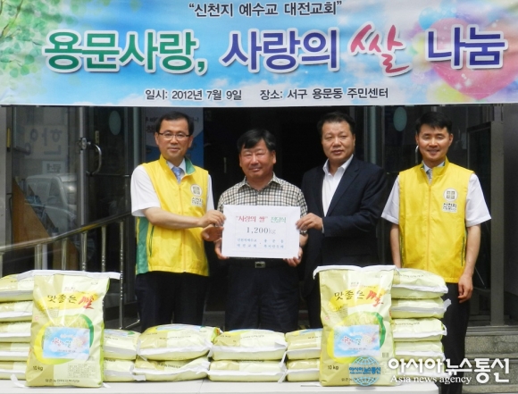 9일 신천지 예수교증거장막성전 대전교회(담임 장방식)는 대전시 서구 용문동 주민센터에서 '사랑의 쌀 나눔 행사'를 가졌다.