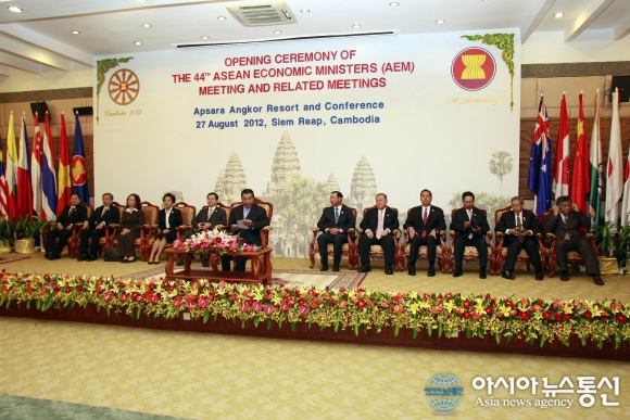 27일(현지시간) 제44회 아세안(ASEAN) 경제장관회의 개회식이 캄보디아 씨엠립에서 열리고 있다. 회의에서 각국 대표들은 아세안 공동체 구성 등 문제에 대해 논의할 예정이다.(신화통신/아시아뉴스통신=구우 기자)